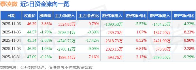 泰凌微(688591)11月6日主力资金净买入3324.83万元