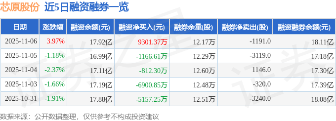 芯原股份融资融券信息显示,融资方面,当日融资买入3.24亿元,融资偿还2.31亿元,融资净买入9301.37万元。融券方面,融券卖出500.0股,融券偿还1691.0股,融券余量12.17万股,融券余额1914.4万元。融资融券余额18.11亿元。