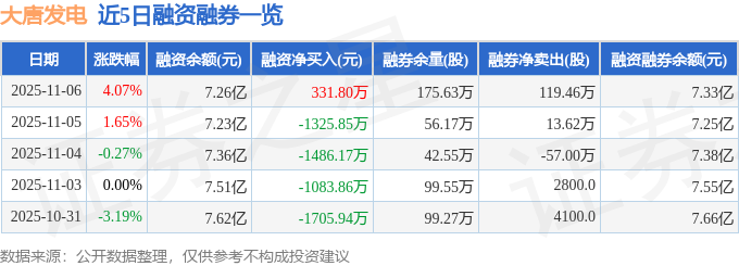 大唐发电融资融券信息显示,融资方面,当日融资买入1.01亿元,融资偿还9779.16万元,融资净买入331.8万元。融券方面,融券卖出120.79万股,融券偿还1.33万股,融券余量175.63万股,融券余额674.43万元。融资融券余额7.33亿元。